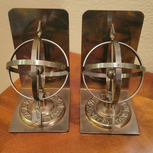 Vintage Brass Armillary Sphere Sundial Bookends