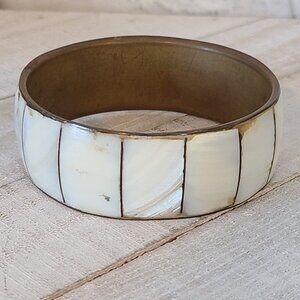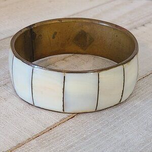Brass Bangle Shell Bracelet Vintage Abalone Inlay