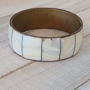 Brass Bangle Shell Bracelet Vintage Abalone Inlay poshmark1