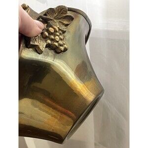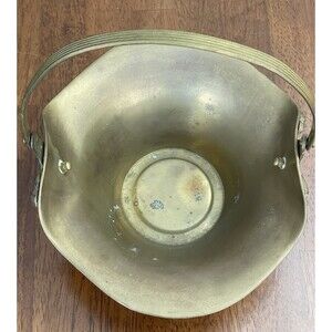 Brass Basket Bowl Moveable Handle Grape Decor India 9”x 7”x 4” VTG