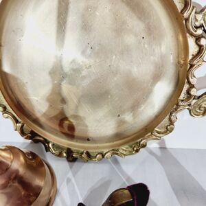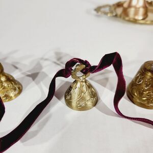 Brass Bells Hand String Plate Lot Vtg Made in India Etched MCM Decor Purple