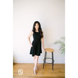 Brass Black Fit & Flare Zipper Back Dress // XS