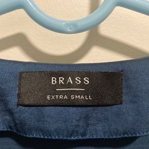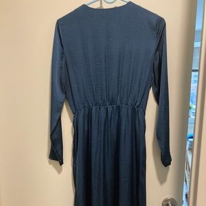 Lightweight long sleeved blue dress from the company Brass Clothing. Has pockets! Hits below the knee