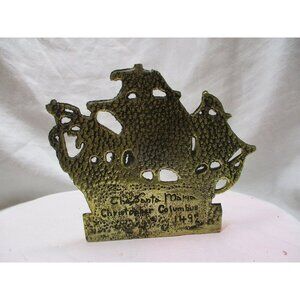 Vintage Brass Bookend, Ship Santa Maria, Christopher Columbus 1492, Rustic Home Decor, Bookshelf Decor, Nautical Bookend or book stop. The ship depicted is the Santa Maria, which was the ship Christopher Columbus sailed in 1492. Measurements: 6" (15 cm) wide, 5 1/2" (14 cm) tall, 2" (5 cm) deep. It is in beautiful vintage condition, with no damage noticed.