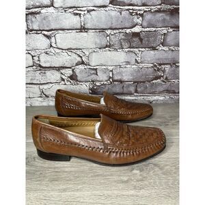 Selling Brass Boot Brown Leather Basket Weave Loafers Dress Shoes Men’s Sz 10M US/43EU