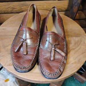 In overall good condition with signs of wear from use including minor scratches in the leather and moderate wear to the bottoms of the shoes. Please see all photos for the best understanding of condition and what is included.