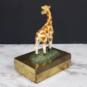 This vintage brass box features a delicate bone china giraffe from Petite Choses. Add a touch of elegance to your home decor with this unique and charming piece. Made with quality materials, this item is a must-have for any collector or home decorator.
