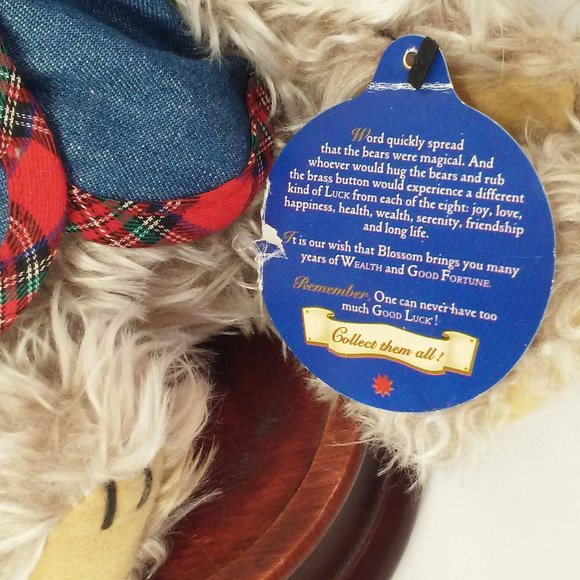 Brass Button Teddy Bear Blossom 1996 Plush Toy Handcrafted Rub for Luck Fortune