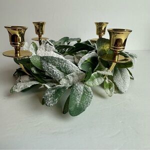Brass Candle Ring 4 Candle Ring with iced floral lambs ear wreath advent