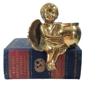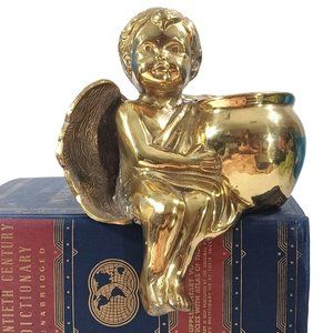 Brass Cherub Angel Putti Mid Century Shelf Sitting Sitter Planter Vase Vintage