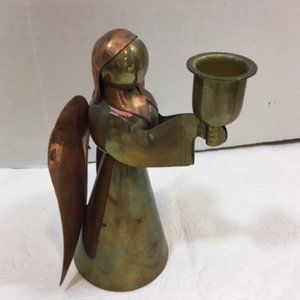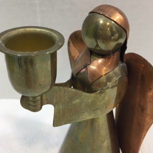 Brass Copper Angel Single Candle Holder Christmas 6" Vintage