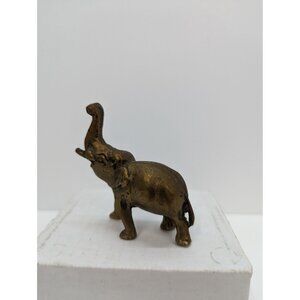 Brass Elephant Trunk Up with Tusks 3 Inch Tall 3 Inch Long Made in India