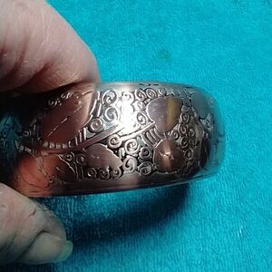 Brass Engraved leaf design large Bangle Bracelet vintage