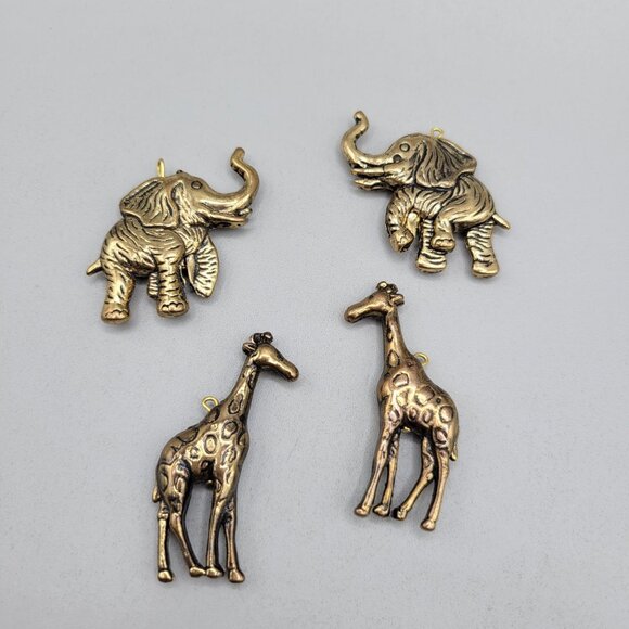 Brass Giraffe and Elephant Charms Pendants Set Of 4
