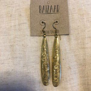 NWT brass gold etched floral dangling earrings by Baizaar. Earring measures approximately 3.5 inches long and 0.5 inches across at the widest point.