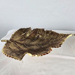 Brass Leaf Bowls x 2 Candy Dishes Decorative Gold Tones 13" x 9" x 3"
