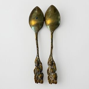 Brass Leaf Shaped Spoons Vintage Lot of Two