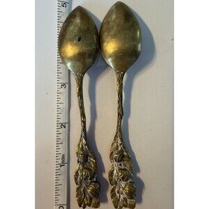 This lot of two vintage brass leaf-shaped spoons is a charming addition to any collection of metalware. Crafted with attention to detail, these spoons feature a unique design that adds a touch of elegance to any dining table or display. Made from solid brass, these spoons are durable and long-lasting, perfect for both practical use and decorative purposes. Ideal for collectors or those looking to add a vintage touch to their home decor, these spoons are a versatile and timeless piece.