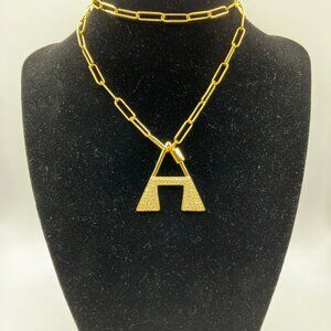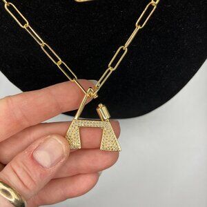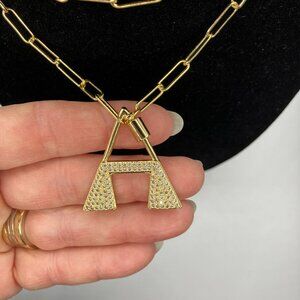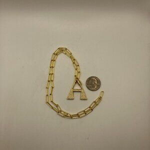 Brass Letter "A" Pendant Cubic Zirconia adjustable 20 inch Paper Clip Chain NEW