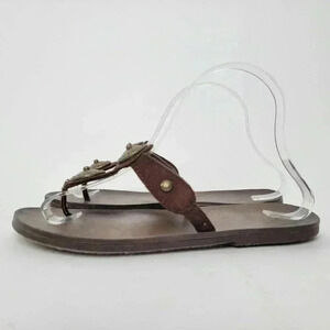 Brass Medalion Crest Flip Flop Thong Sandals - 7