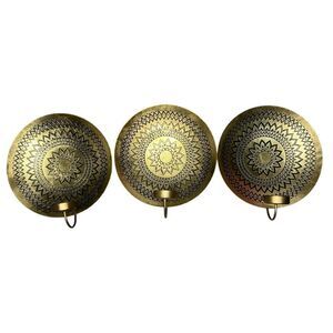 Brass Medallion Sconce Set of 3 Wall Hanging Candle Holders Boho Home Decor