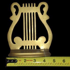 Brass Musical Lyre Harp Bookend Musician Mid Century MCM Vintage Patina ONE