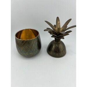Vintage Home Decorative Tabletop Retro 7" Brass Pineapple Ice Storage Bucket.