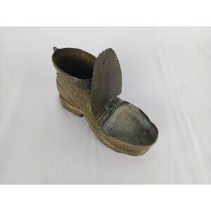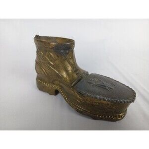 Brass Plated Shoe Ashtray Pewter With Flip Up Lid Desk Table Shelf Decor
