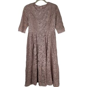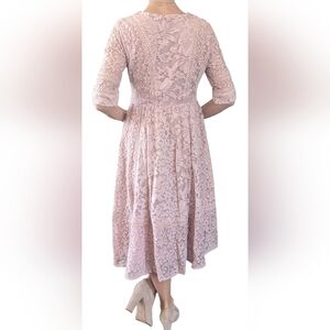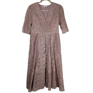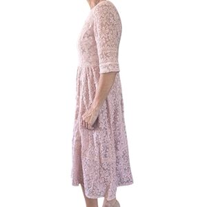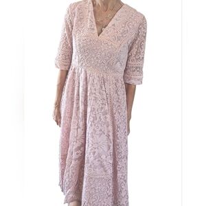 Brass & Roe Blush Pink Lace Midi Dress M Romantic Cottagecore Spring Wedding