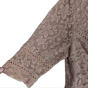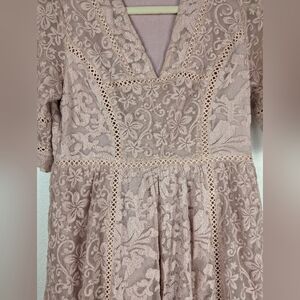 Soft and romantic, this Brass & Roe blush pink lace midi dress (size M) blends timeless femininity with modern elegance. Crafted with intricate floral lace, half sleeves, and a flattering V-neckline, this piece drapes beautifully for a romantic, vintage-inspired silhouette. Fully lined for comfort with a flowy, lightweight feel.