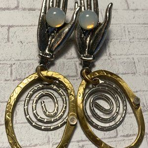 Brass Silver Pewter Moonstone Hand Goddess Earring