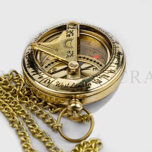 Discover the classic appeal of our 2-inch Vintage Brass Sundial Compass, which is tastefully enclosed in genuine leather. Crafted with precision and attention to detail, this gorgeous compass is more than simply a navigational tool; it's a statement piece that lends a bit of vintage charm to any voyage.