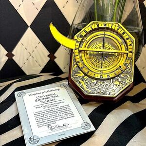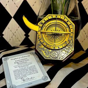 A stunning and eye catching collector's piece from Franklin Mint, this gold-toned equinoctial sundial compass is both a scientific instrument and a work of art. Crafted with refined elegance and intricate detail, it pays homage to the golden age of exploration and celestial navigation. Comes with its original certificate of authenticity, making it an ideal gift or heirloom-quality addition to any collection of fine instruments or vintage curiosities.