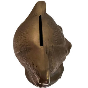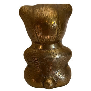 Brass Teddy Bear Coin Bank Screw Held Bottom Older Vintage Collectible