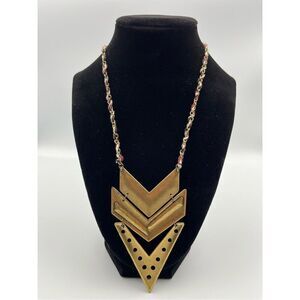 Brass Tone Arrow Rhinestone Triple Chevron Necklace 19.5”