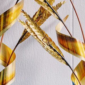 Brass Wall Art of Wheat Fronds. In the style of Curtis Jere, Mid Century Artist.