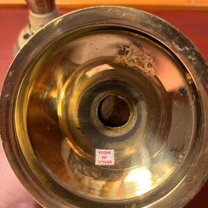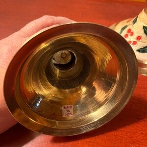 These brass candlestick holders are perfect for adding a festive touch to any room during the holiday season. Set of two small candleholders feature a Holly pattern in multicolor and enamel on brass. Made in India in the late 20th century, these original holders can be cleaned with a damp cloth. The seasonal theme Make them a charming addition to your Christmas decor. Excellent condition!