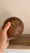 Very unique piece! About 5” diameter. Brass details around what looks like wood but I believe is too heavy for wood. Really unsure of the purpose of this or what the other material is. Reminds me of the balls thrown in the Quidditch game! Very mid century