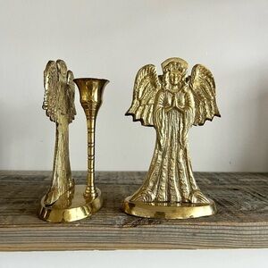 Solid brass angel candlestick set of two. Beautiful pieces to set out for the holidays. No damage, dents or cracks. Very little tarnish.