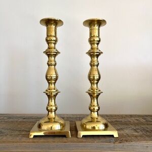 Beautiful solid brass candlesticks set of 2. Stamped Japan. Very nice condition. Light patina.