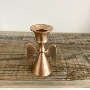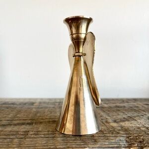 Solid brass angel candlesticks set of two. Tiny and delicate. Very cute! Comes apart in 3 pieces for easy polishing.