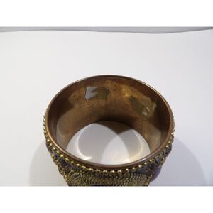 Brass purple beaded wide bangle bracelet, 8" length, missing stone