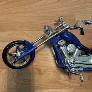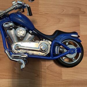 The Bratz Blue Electronic Motorcycle Chopper from 2003 is a vintage doll vehicle made of plastic, featuring working sounds and lights. This original set includes one motorcycle and is part of the Bratz franchise by MGA Entertainment. Although it does not come with packaging, this electronic toy is a collectible item from the 2000s that would make a great addition to any doll enthusiast's collection. Its unique features and nostalgic value make it a sought-after piece for fans of Bratz dolls and vintage toys.
