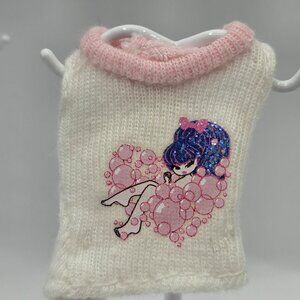 This Bratz doll clothing set features a charming mix of styles, including a bunny-themed top, a pink-bubbled white top, and a green tank with "Glam" sequins. Ideal for adding variety to your doll's wardrobe, these pieces offer playful designs suitable for various fashion mixes.