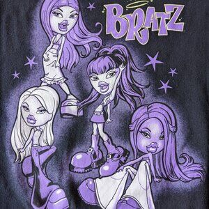 Bratz Dolls Y2K Black Crewneck Pullover Oversized Graphic Sweatshirt
