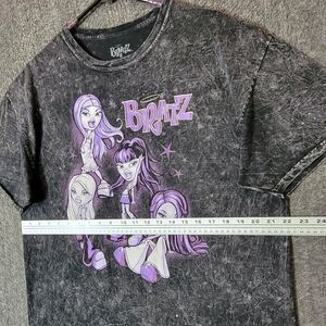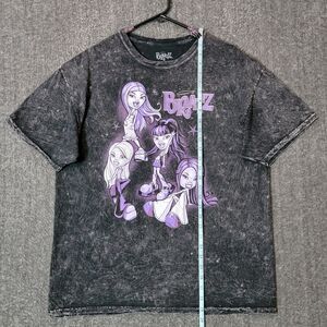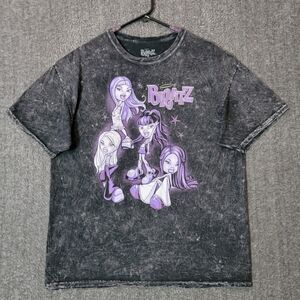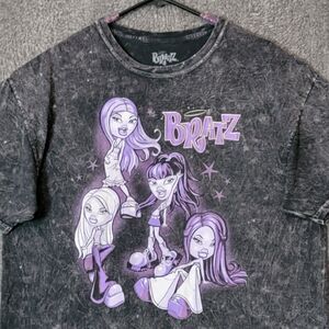 Bratz T-Shirt Womens XL Black Acid Wash Purple Dolls All Characters Crewneck Tee.
