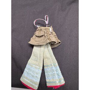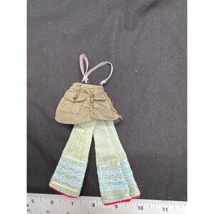 Elevate your doll's fashion with this chic outfit featuring lace-trimmed denim flare pants and a stylish mini handbag adorned with orange pom-poms. This ensemble adds a touch of flair to any doll's wardrobe, making it an ideal choice for creating unique and trendy looks.