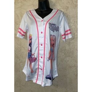 This stylish Bratz baseball tee features a vibrant graphic design.