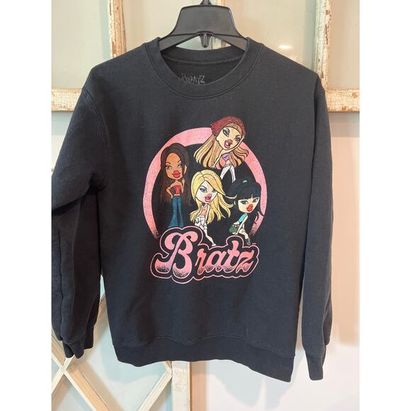 Bratz dolls size small women’s sweatshirt. It has some cracking that I have shown in a close up. Not sure if it was designed to look worn or not. Measures 19 1/2” from armpit to armpit and 26” long.