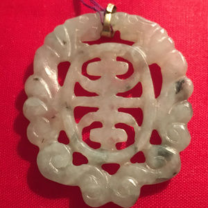 Beautiful Hand Carved Genuine Green Jade Pendant with a GF bale. Nice larger size piece. Size 2 1/4" X 1 1/2" These are getting more difficult to find at an affordable price.